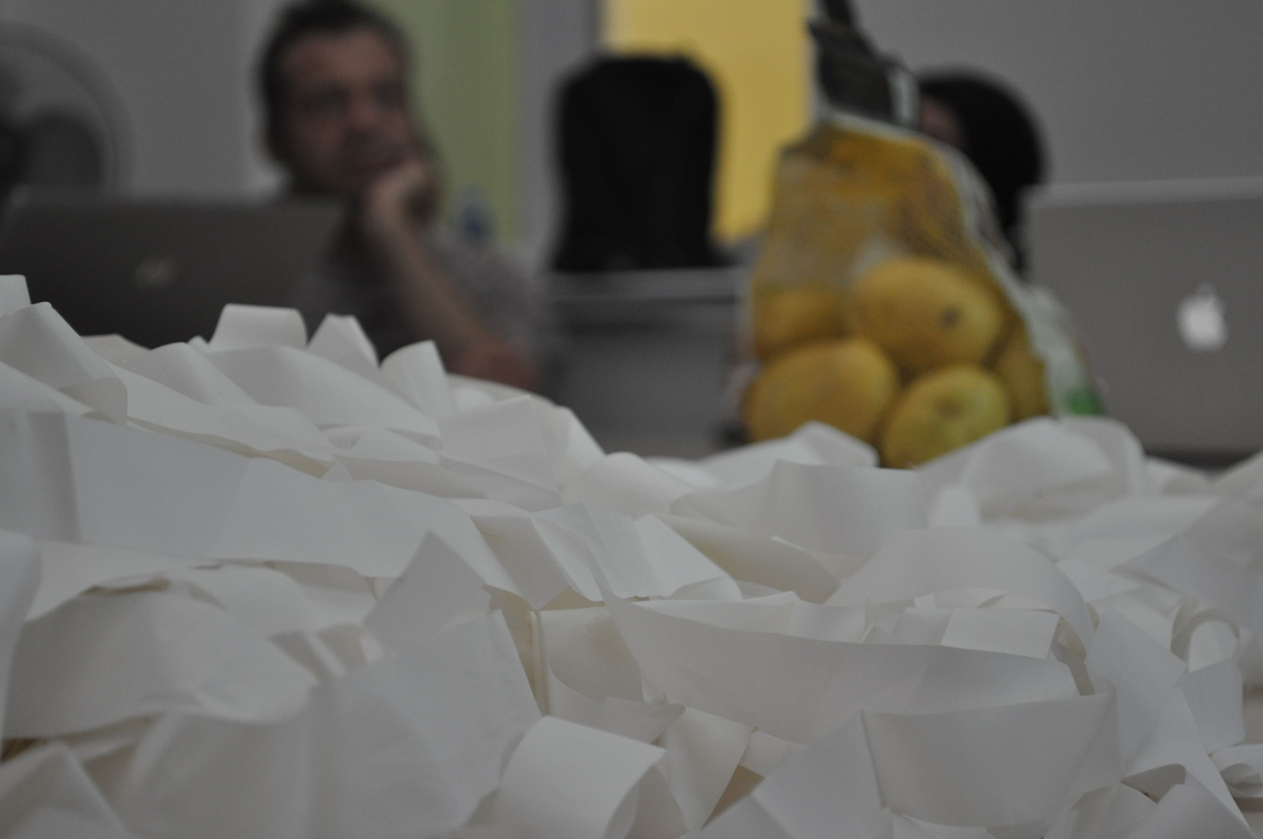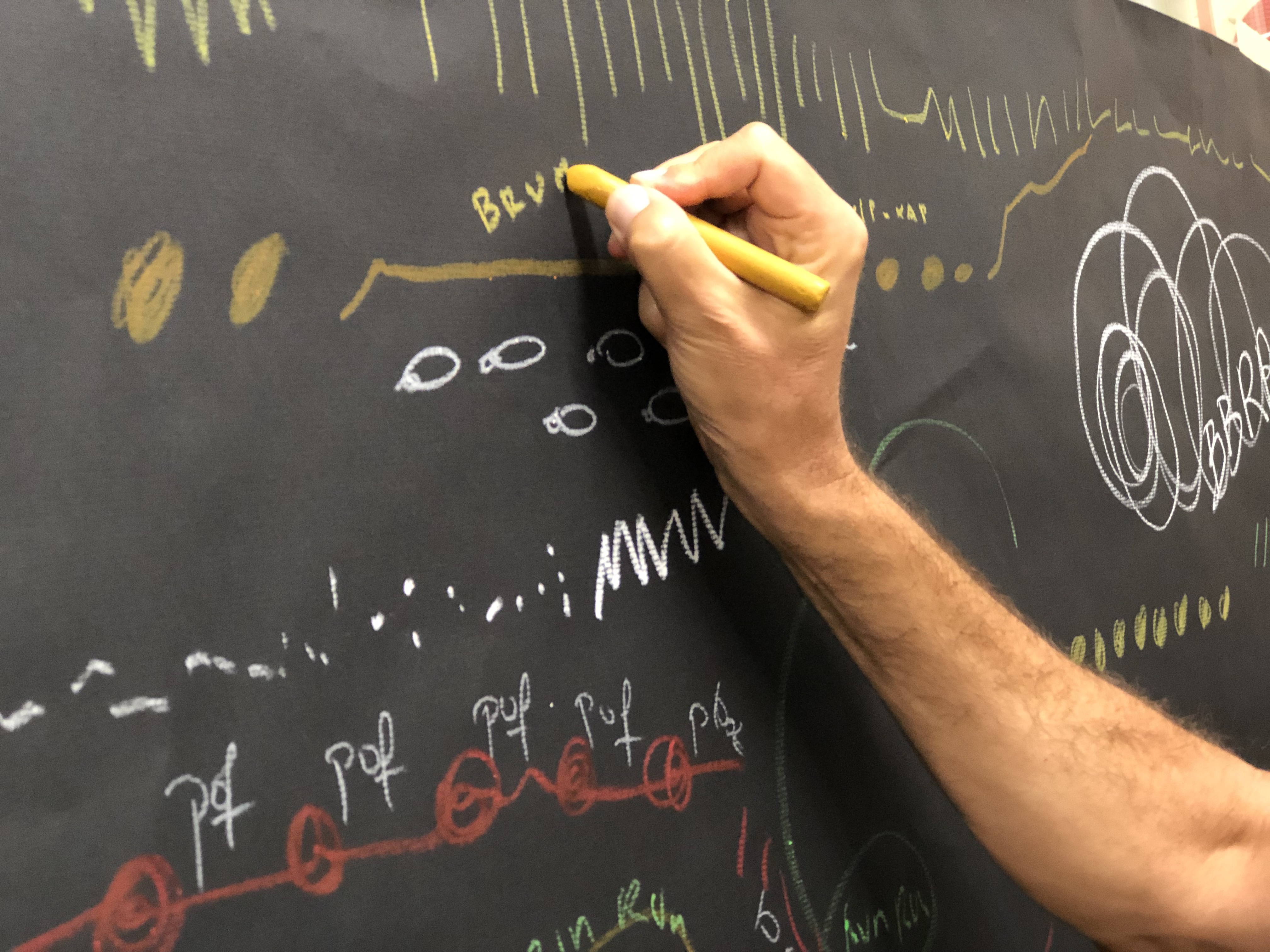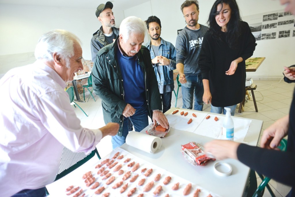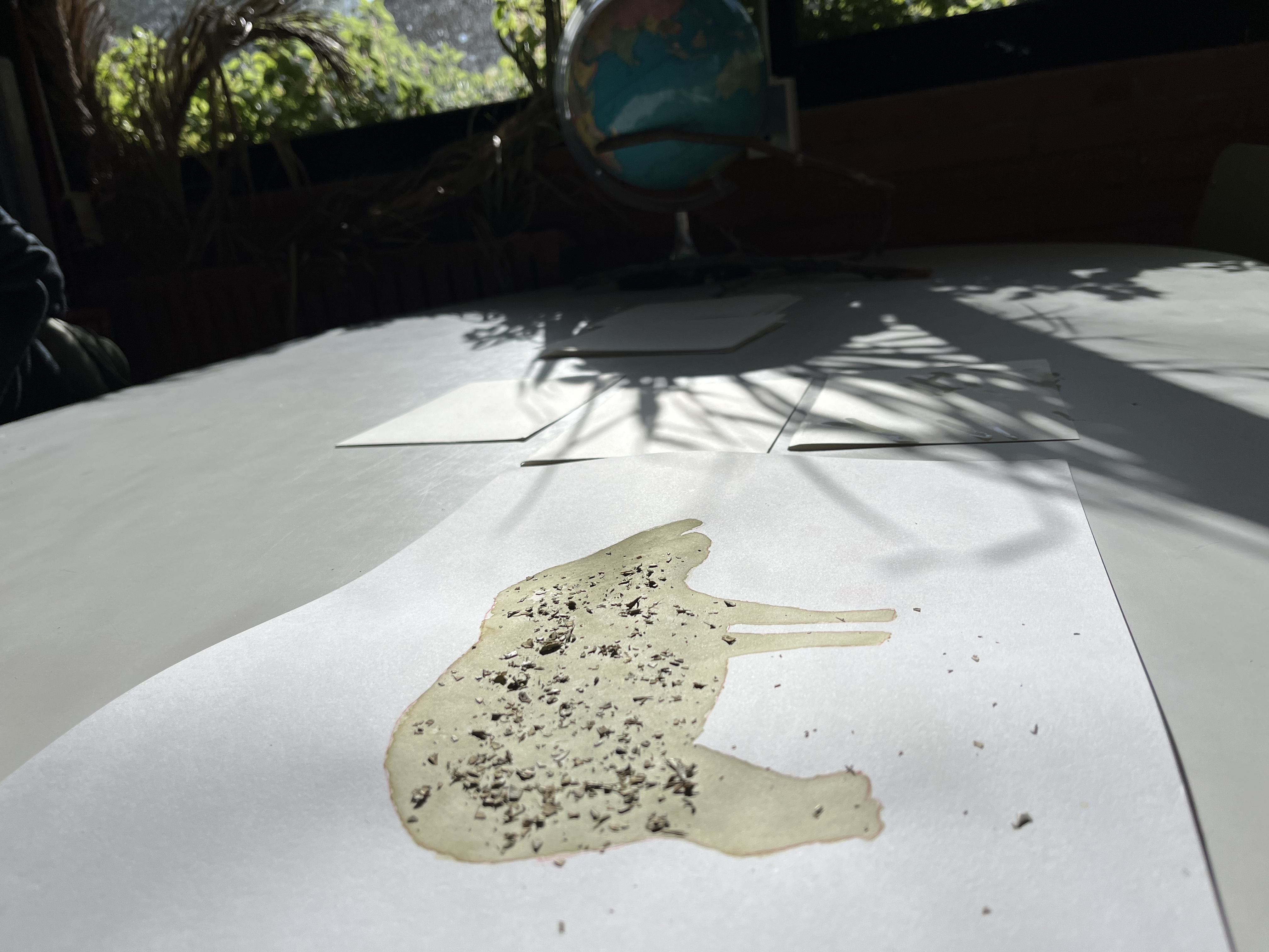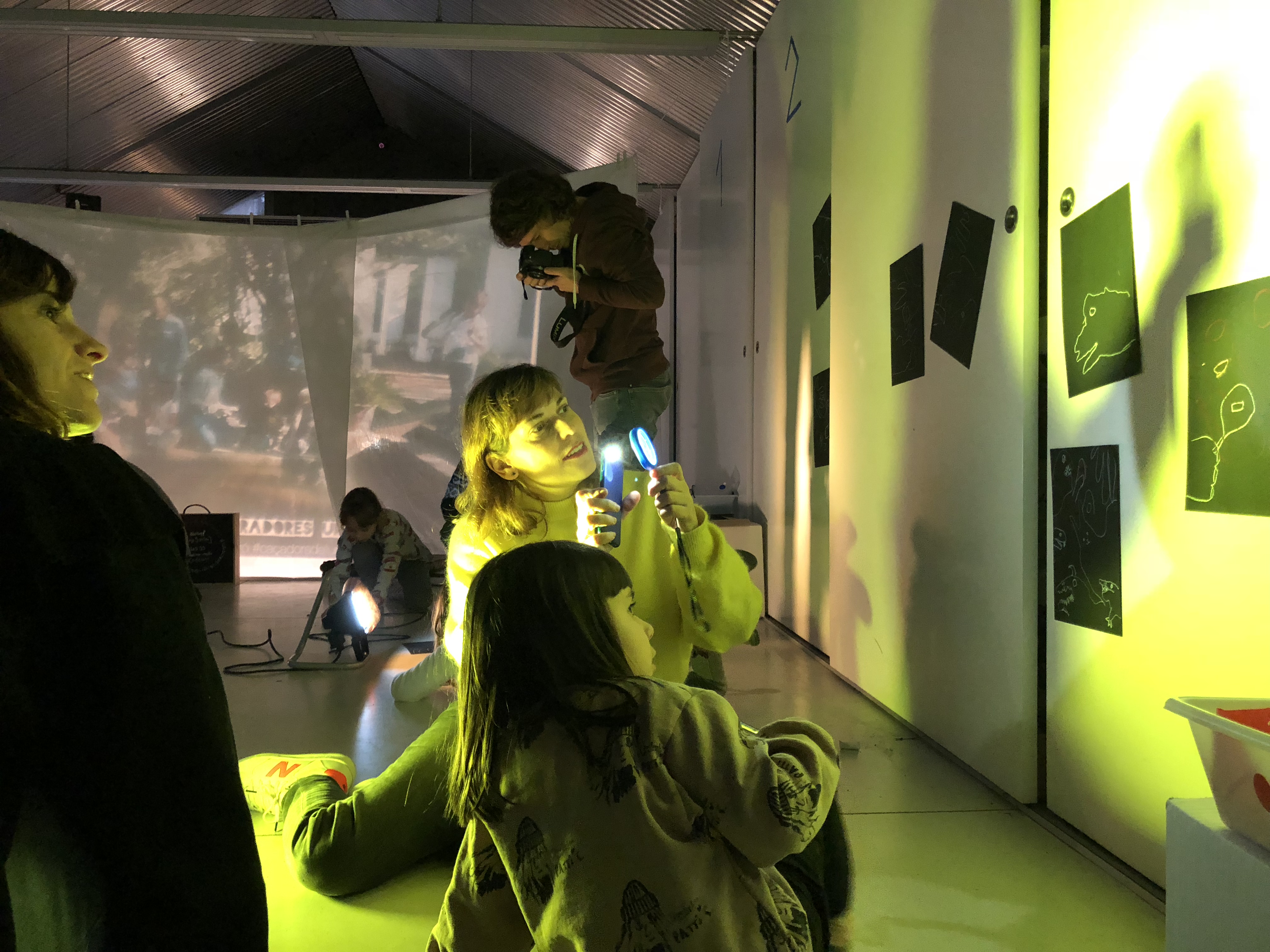 Impregnadas por los olores, sabores y texturas creamos una serie de ejercicios que, entre todas, configuraban obras colectivas y culminaban en una performance. El gabinete fue habitado por 6 grupos, de los cuales 4 fueron familias, niñes y adultes , otro grupo fueron alumnes del grupo de ESPAIS C de la escuela Dolors Monserdá Santa Pau y otro fue abierto a una formación de un grupo de docentes de la Escola Pau Sans de Barcelona.