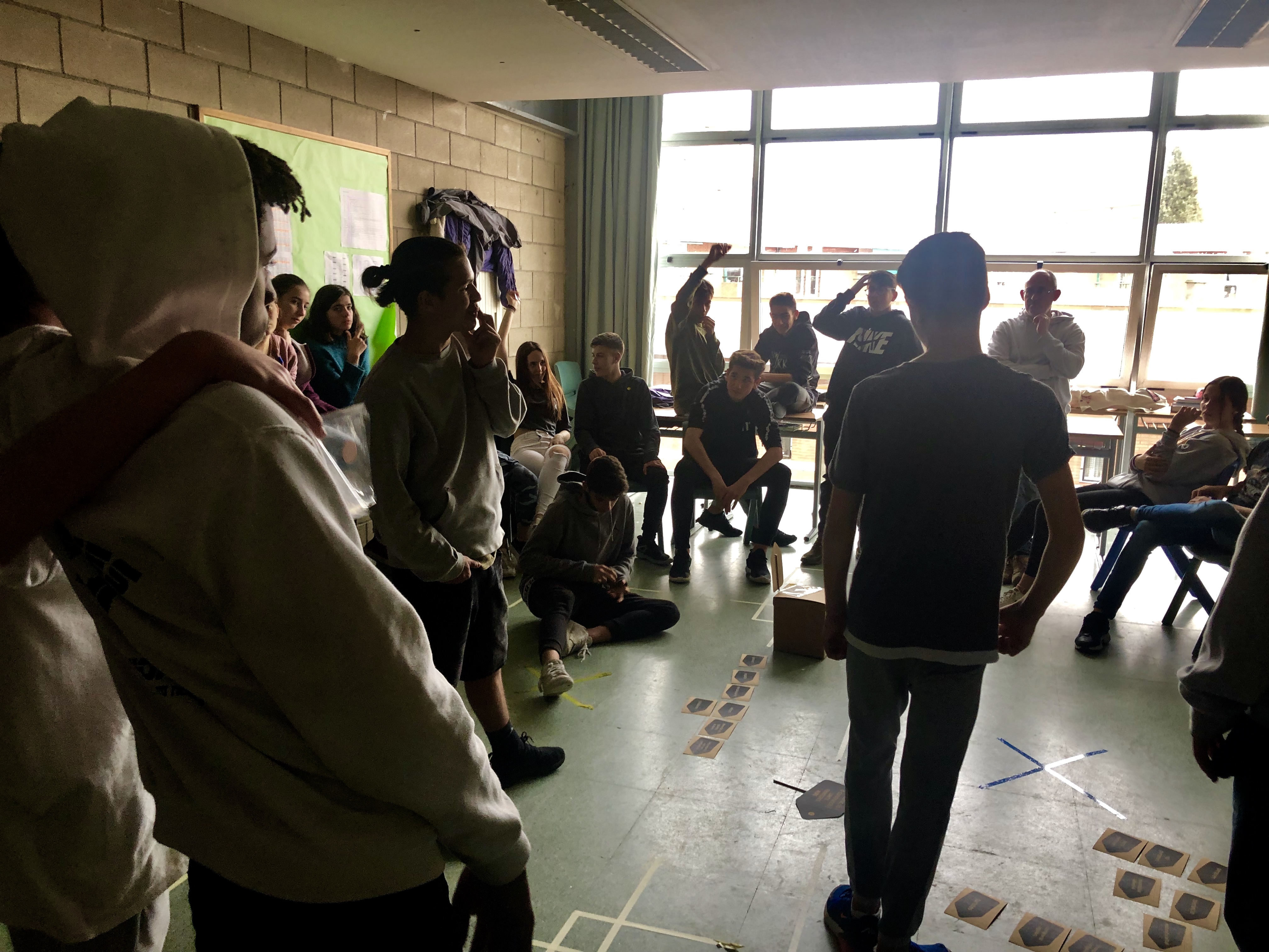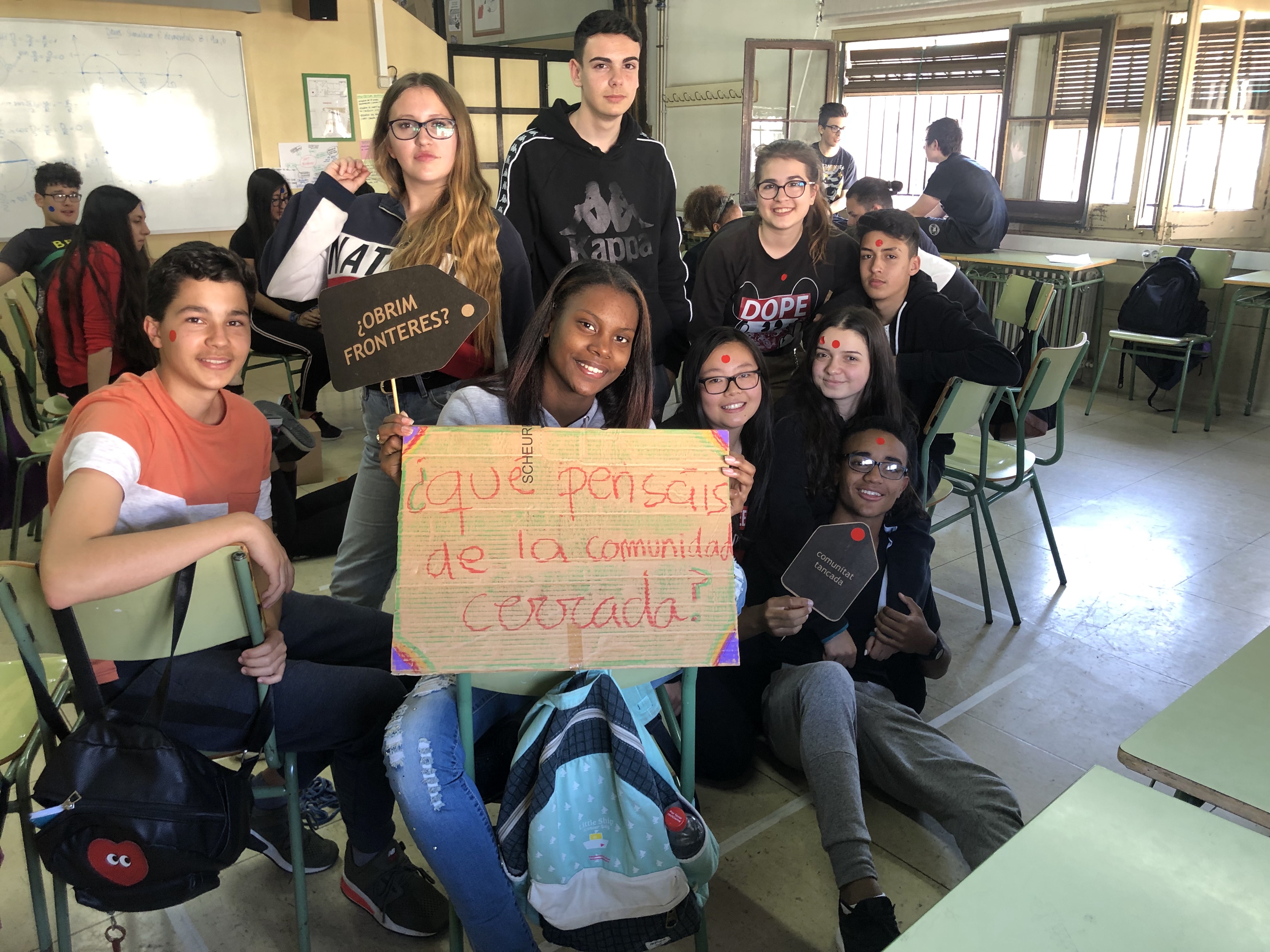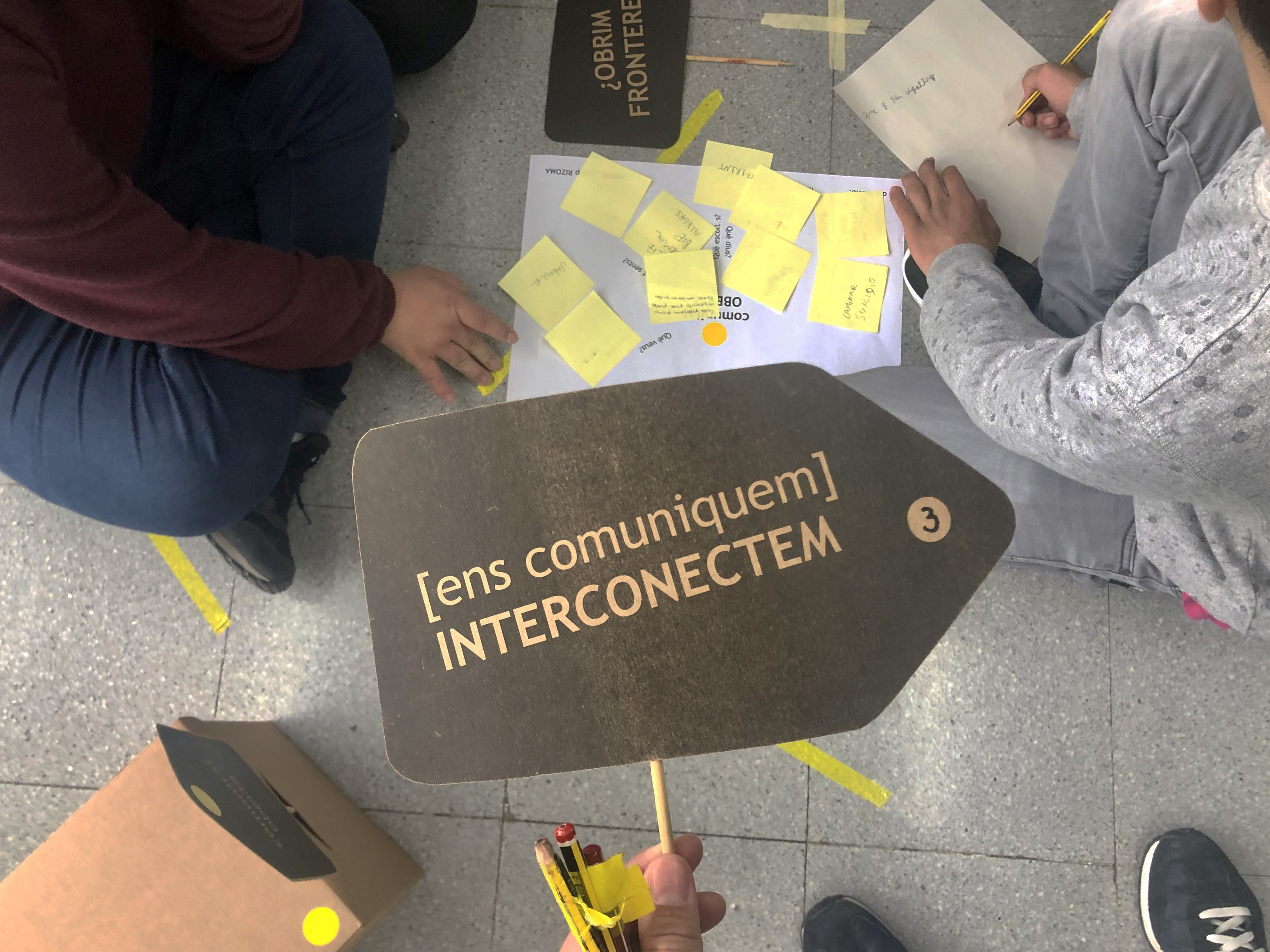 Durante el ciclo 2018/2019 ofrecimos sesiones para el Proyecto UMBRAL, una iniciativa de Imma Prieto_Crítica de Arte, escritora para el Ayuntamiento de Barcelona y en alianza con La Virreina Centre de la imatge & TMB. Las sesiones se han desarrollado en Institutos de Barcelona y han estado dirigidas a estudiantes de 14 a 16 años. Mediante dinámicas experienciales y performáticas hacemos ejercicios que nos acercan a cuestionarnos límites/ fronteras / muros. Proponemos a los/as participantes re pensar nuestras comunidades y planteamos un ejercicio para imaginar comunidades abiertas, semi abiertas y cerradas. Dotamos de herramientas a las participantes con la finalidad de acercarnos a las múltiples y diversas realidades de las personas que migran. A partir de la puesta en común y de la reflexión sobre la experiencia vivida, acercamos a los/as participantes a la necesidad de ser actores activos de nuestra sociedad para favorecer «la convivencia» entre todas las personas.