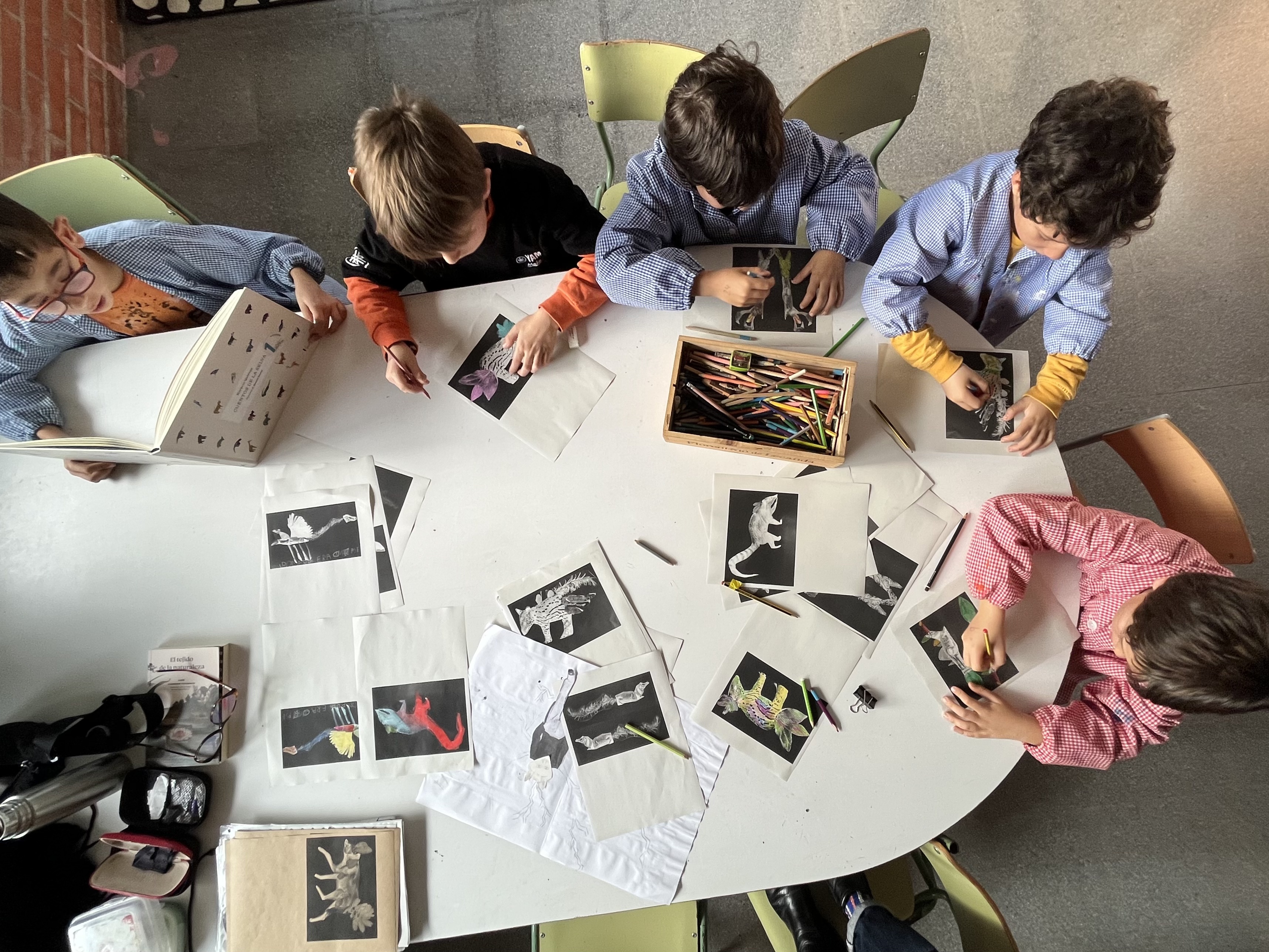 Artistas, escuelas y mediadores trabajamos conjuntamente. Durante 2 cursos, junto con el artista Gonzalo Elvira formamos parte de {espais c} y haremos una residencia de 2 años -2023-2025- en la Escuela Dolors Monserdá Santa Pau, ubicada en Sarría, al pie de Coolserolla- con el acompañamiento de la Fundació Antoni Tàpies.